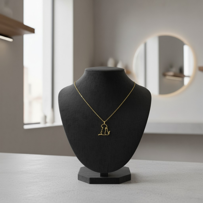 Celebrate the unbreakable bond between pets and their humans with the Pet Lovers Necklace. This timeless stainless steel pendant features a delicate design of a puppy and kitten in a loving embrace, symbolising loyalty, companionship, and affection. Elegant yet versatile, it is the perfect accessory for daily wear or as a heartfelt gift for someone who cherishes their furry friends.